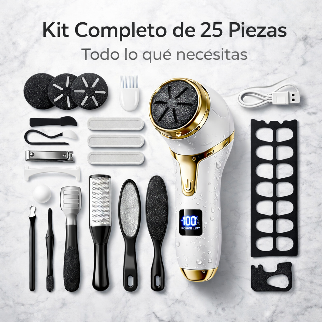 No es como una lima tradicional. Este dispositivo utiliza un rodillo eléctrico que elimina la piel muerta de forma uniforme, rápida y sin esfuerzo, logrando resultados más efectivos desde el primer uso.